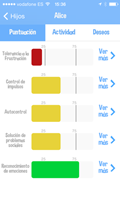 La aplicación para padres te permite ver los resultados de tus hijos en las diferentes competencias emocionales que se evalúan.